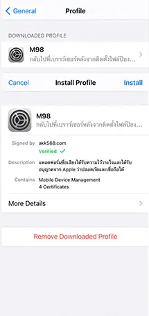 - ไปที่การตั้งค่า -> ทั่วไป -> การจัดการอุปกรณ์